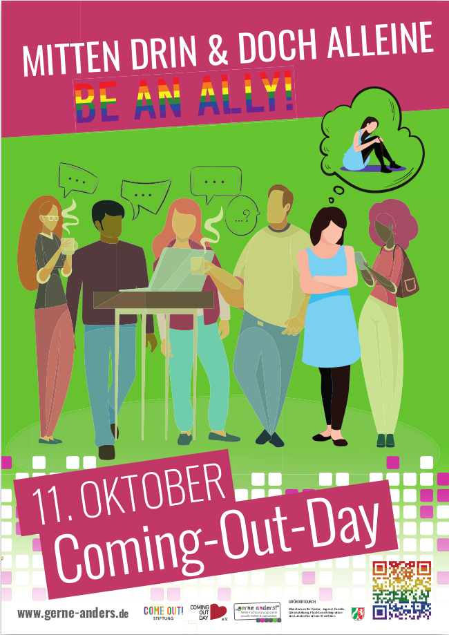 Jährlich wird am 11. Oktober der Internationale Coming Out Day begangen. Dieser Aktionstag setzt seit seinem ersten Auftreten 1988 weltweit ein Zeichen für die Akzeptanz und Sichtbarkeit von LSBTIN*-Personen. Ein Coming-out ist häufig ein komplexer und persönlicher Prozess, der für viele Betroffene mit Unsicherheiten und Ängsten verbunden ist. Trotz zunehmender gesellschaftlicher Offenheit bestehen weiterhin Herausforderungen, da Vorurteile, Diskriminierung und Stigmatisierung gegenüber Menschen aus der LSBTIN*-Community nach wie vor Realität sind. Gerade deswegen bleibt der Coming Out Day ein wichtiger Anlass, um auf bestehende Ungleichheiten hinzuweisen, die Sichtbarkeit queerer Lebensweisen zu erhöhen und zu einer offenen, respektvollen Debatte beizutragen.